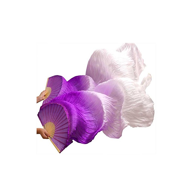 Nimiman Women New Belly Dance Fan Veils Gradient Color Purple White (1.5m)