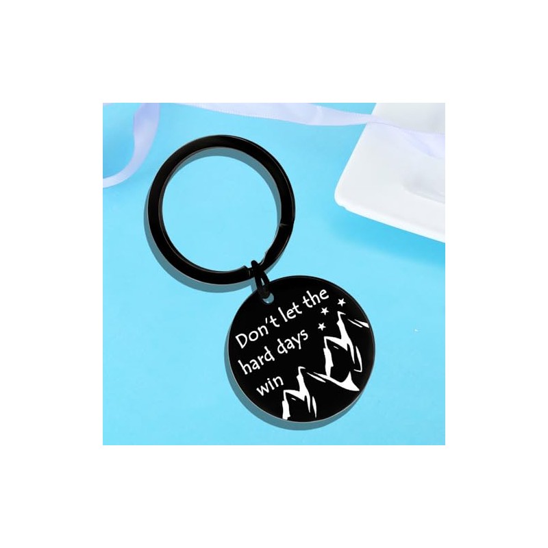 - The keychain is engraved with the message “Don't Let the Hard Days Win"