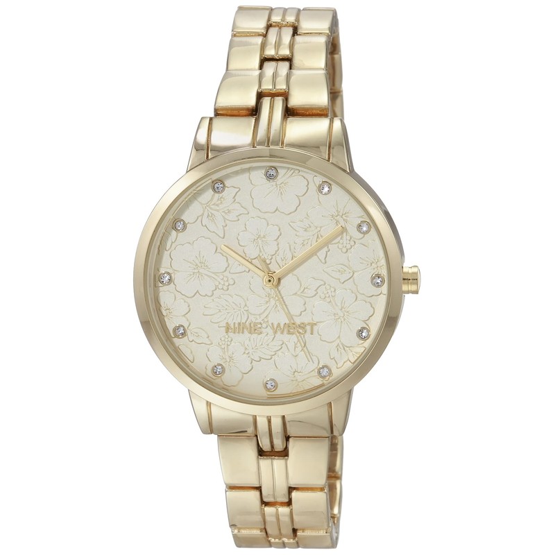 Nine West Women's Genuine Crystal Accented Floral Dial Bracelet Watch