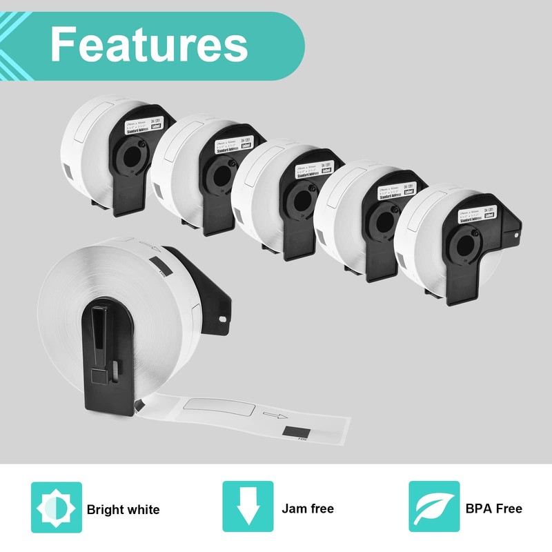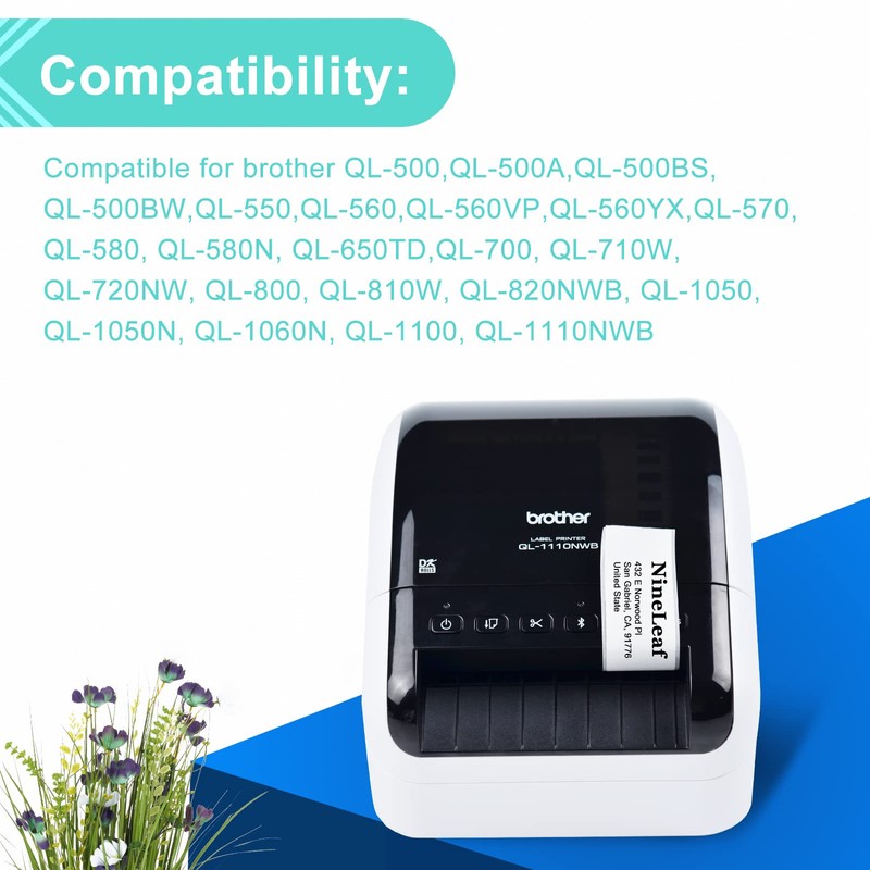 - Compatible with Brother QL Label Printers: QL-500, QL-500A, QL-500BS, QL-500BW, QL-550, QL-560, QL-560VP, QL-560YX, QL-570, QL-580, QL-580N, QL-650TD, QL-700, QL-710W, QL-720NW, QL-800, QL-810W, QL-820NWB, QL-1050, QL-1050N, QL-1060N, QL-1100, QL-1110NWB; Do not compatible with dymo printer