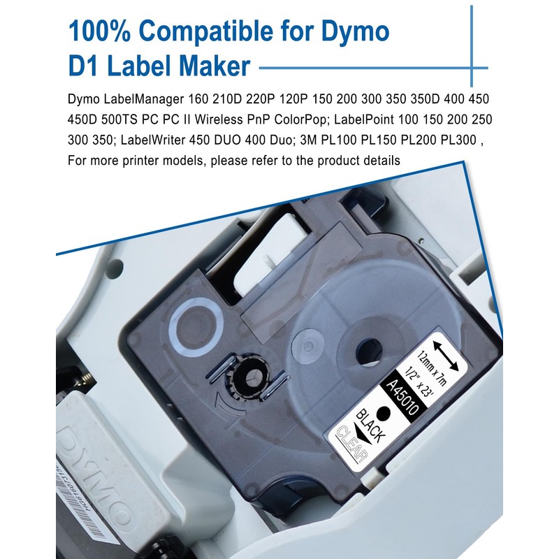 - Versatile: compatible with Dymo D1 labels can be used indoors or outdoors. It is widely suitable for office, shop, home, supermarket, laboratory, warehouse, library, etc. In addition, these tapes can also be applied to smooth and flat surfaces.