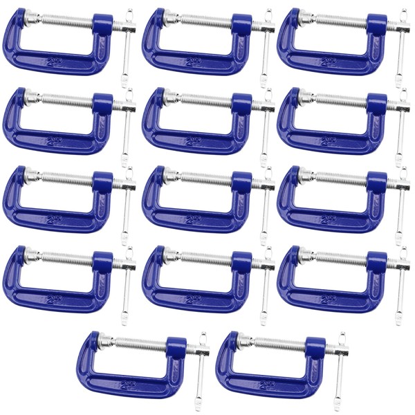NINGWAAN 14 Pack 2 Inch C Clamp, Cast Iron C Clamps with Sliding T-Bar, Mini G Clamps for Woodworking, Welding and Building, 2 Inch Jaw Opening, 1-3/16 Inch Throat Depth, Blue