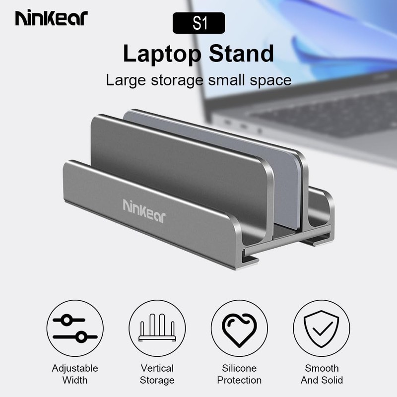 • Product Features: Space Saving: The vertical design of Ninkear S1 allows you to make full use of desktop space and easily place other office supplies to keep your desktop neat and tidy. Viewing Angle Adjustment: This stand supports multi-angle adjustment, allowing you to easily find the most comfortable viewing angle and improve work efficiency. Stable and Durable: Made of high-quality materials, ensure that the stand is stable and reliable, can withstand the weight of the laptop, and protect your device.