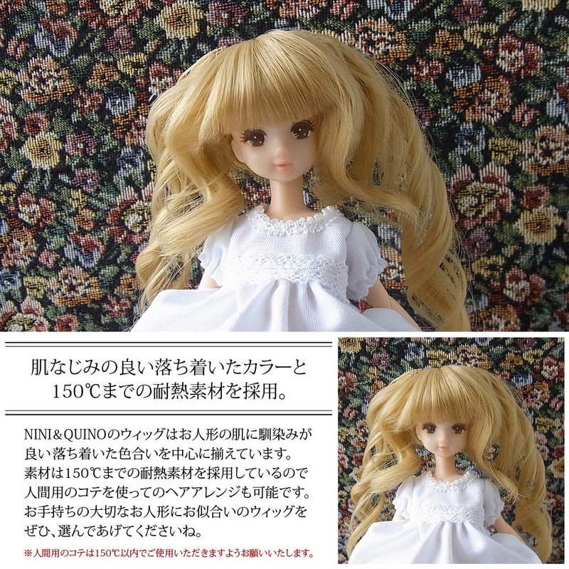 Ninnandokino Small Doll Wig 1/6 Doll Heat Resistant Wig 4.5" Head Circumference | Curly Twin Tail (Honey Ash)