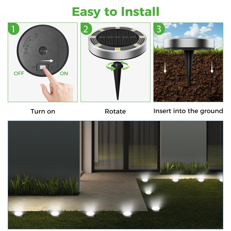 - Easy to Install: You can wet the lawn with water before installation, and then it can be easily inserted into the soil. It only takes a few minutes to complete the installation. (Note: Please push the switch to the "ON" position before installation)
