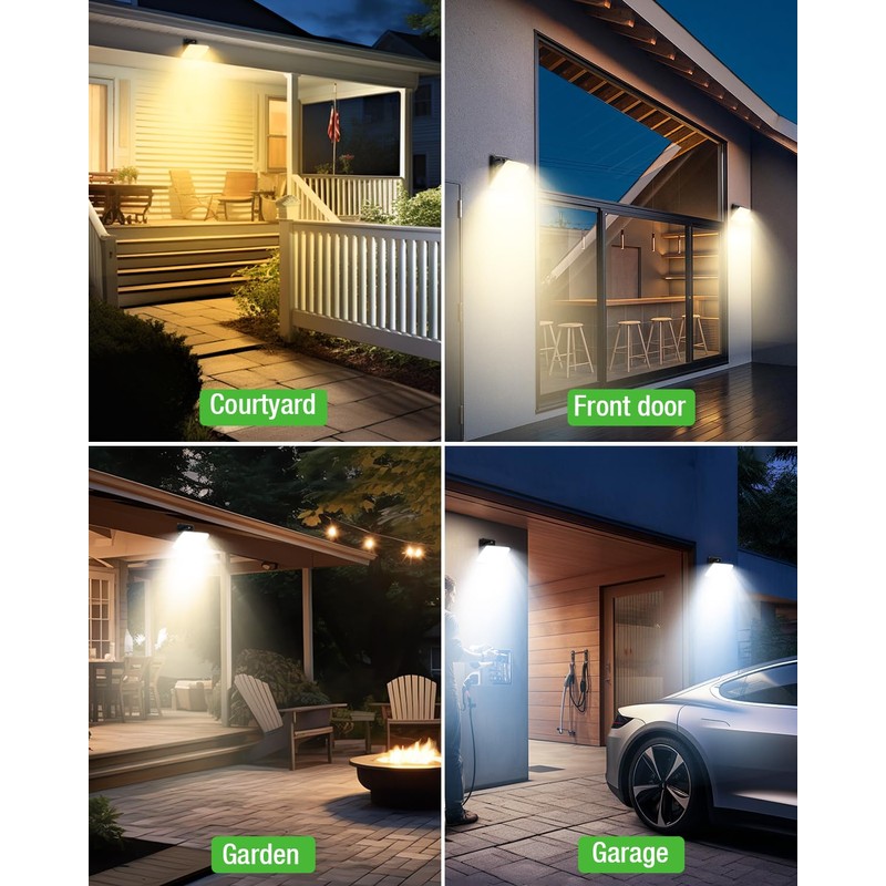 - Easy to use: the lamp head can be adjusted 180° up and down to meet your lighting needs from multiple angles. The outdoor lamp with motion sensor adopts a rotary knob position design, with the adjustment knob below the lamp body, eliminating the problems that conventional spotlight buttons on the back are difficult to adjust and allows a more user-friendly upgrade.