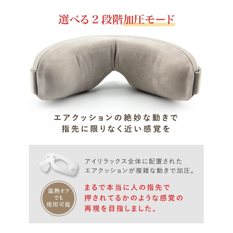 • Air Pressure Mode/Hot Pack: Equipped with only Niplux pressure massage technology.Gently soothe your eyes with the touch close to your fingertips.Slowly warm your eyes at comfortable temperature of 107.6 (42℃).Warm up your eyes and head to relax