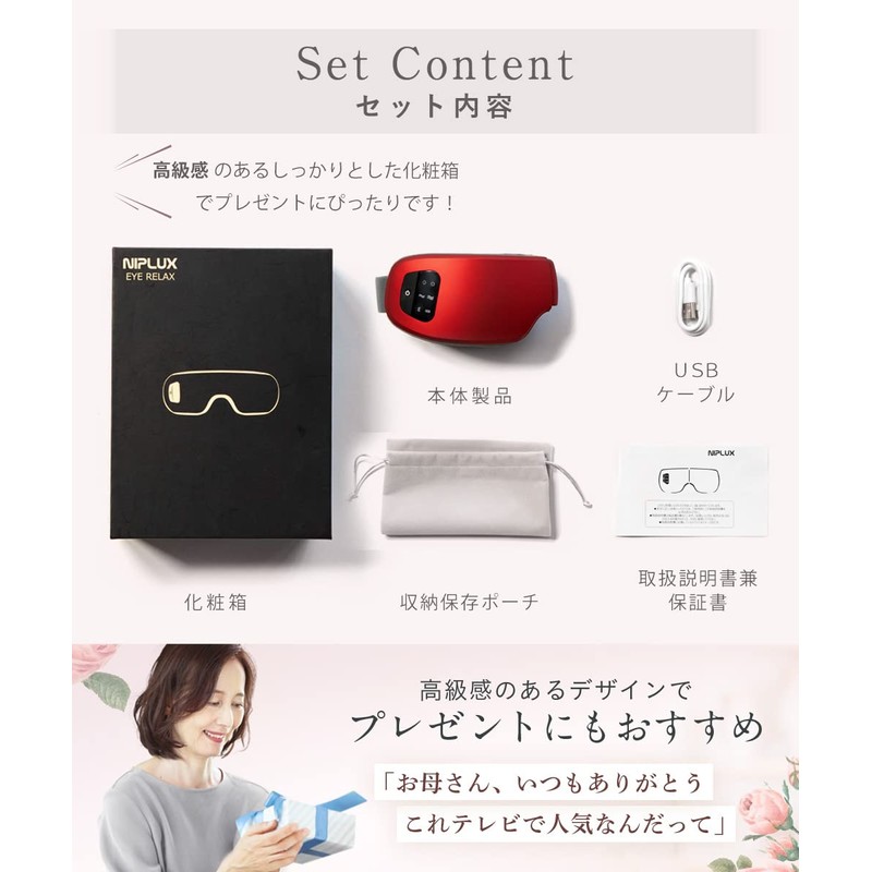 Niplux Eye Relax Hot Eye Mask, Nisso Plus Co., Ltd. Niplux, Eye Warmer, Eye Care, Bluetooth Function, Music, 3D Light Blocking, Relaxed, Cordless, Foldable, Convenient, Travel, Business Trips, Unisex, Respect for the Aged Day, Birthday Gift, Celebration, Red