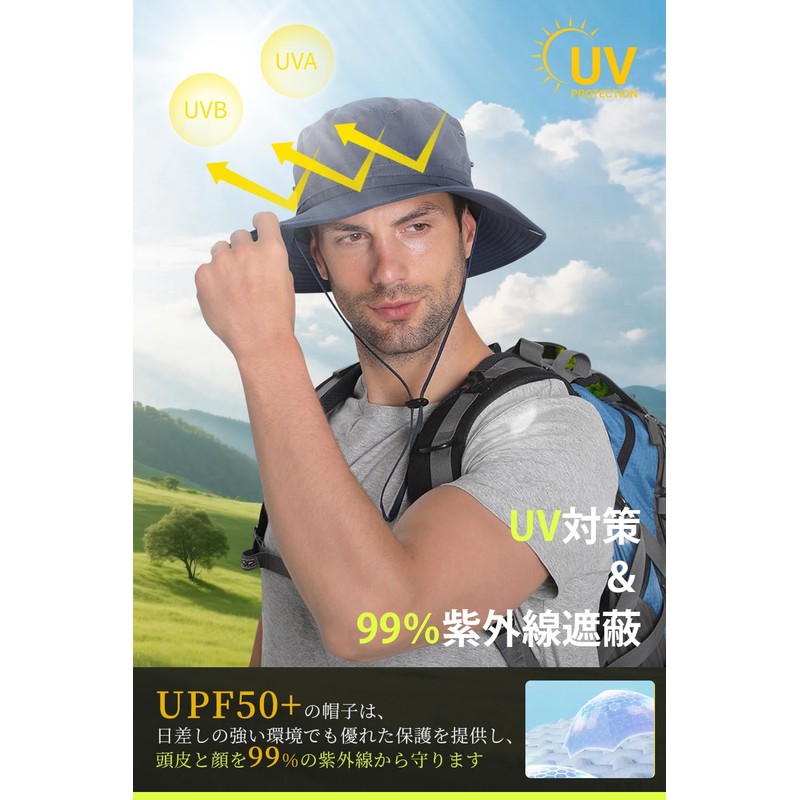 Nippaws Safari Hat, Men's, Sun Protection Hat, Wide Brim, UV Protection, Ultra Lightweight, Sun Protection, Moisture Wicking, Quick Drying, Mesh, 2-Way, Foldable, Includes Chin Strap, Camping, Outdoor