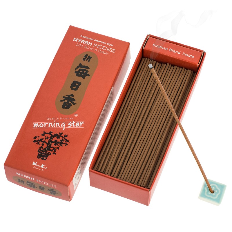 Nippon Kodo Morning Star Myrrh Japanese Style Incense Sticks with 200 Bars + Incense Holder