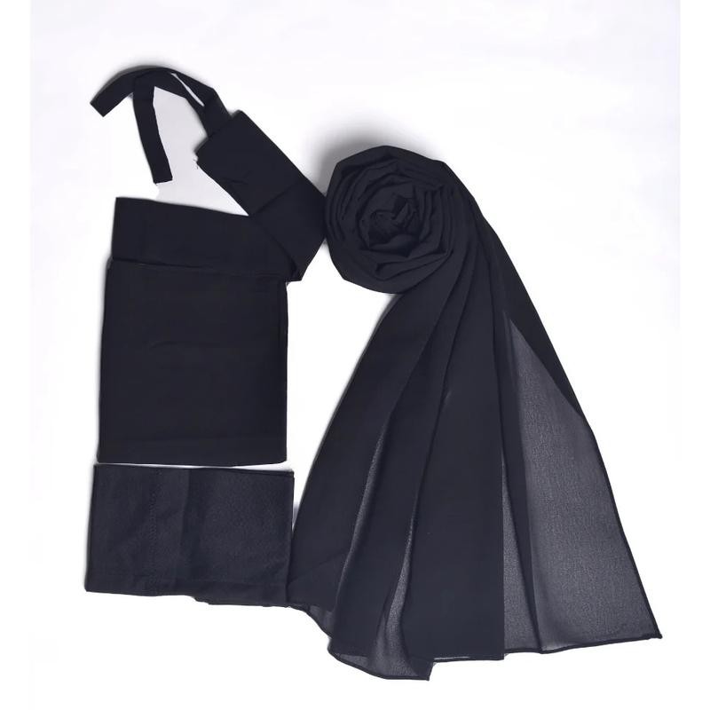 - Niqab and Scarf Set - Front Drape - Elastic Side BandA complete, coordinated set featuring a graceful front drape and an elastic side band for a flexible and secure fit.