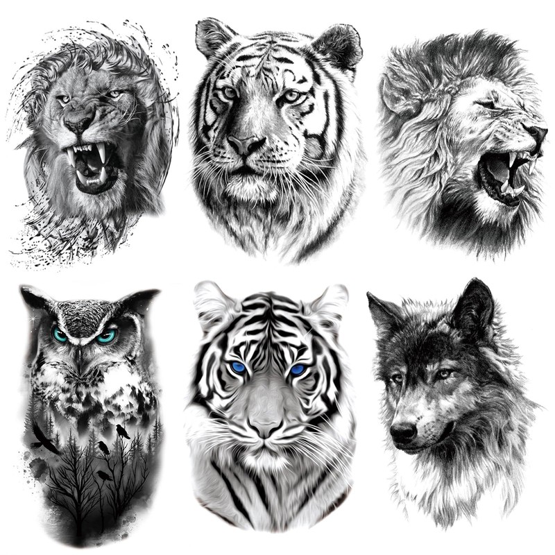 Nirbffo Large Size Tattoo Stickers Lion Tiger Wolf Transferable Tattoo Stickers 6 Sheets 15 x 21 cm
