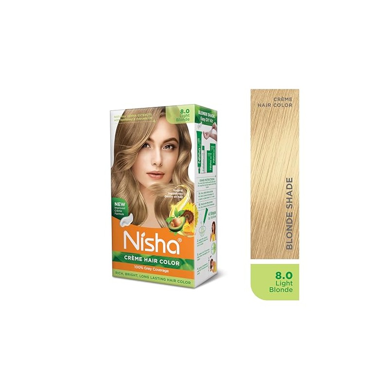 Nisha Creme Permanent Hair Color 100 percent Gray Coverage Hair Dye Pack of 6 Light Blonde Vegan and Cruelty-Free Permanent Hair Color
