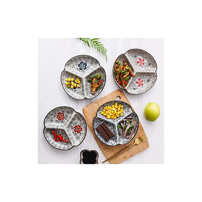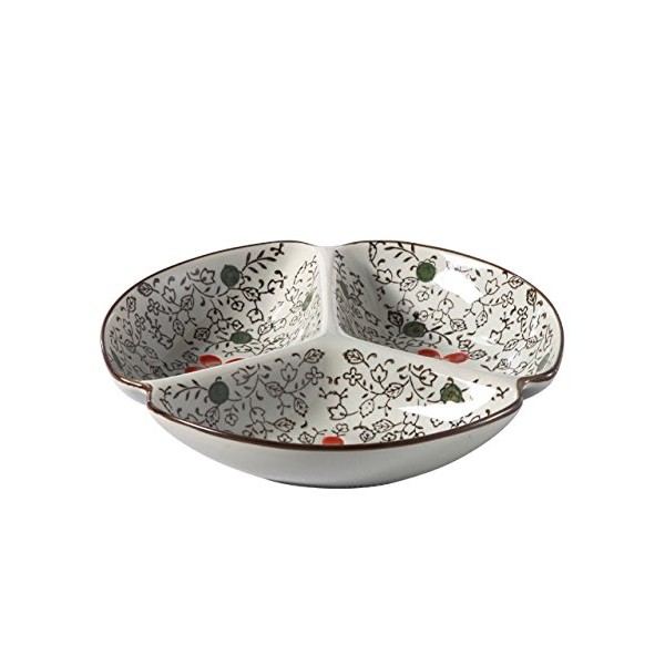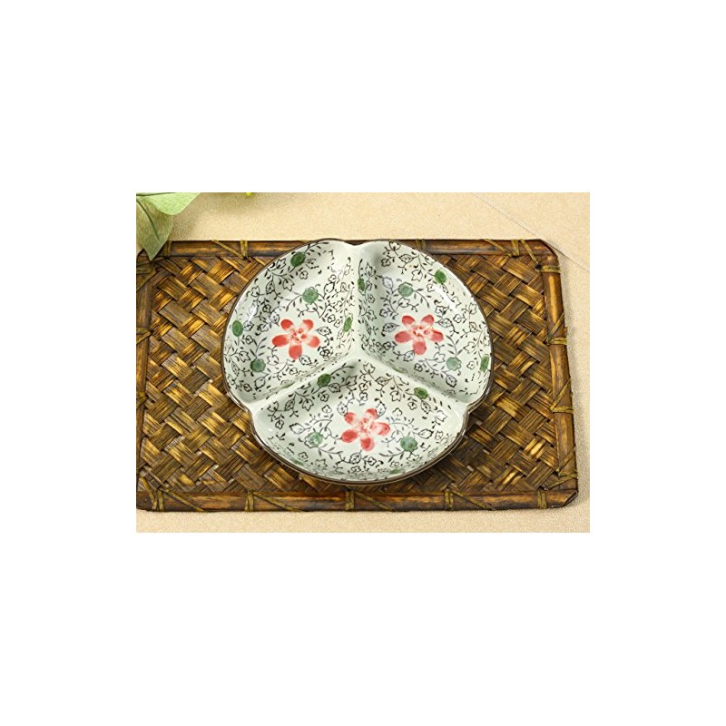 Nishida No. 7.5 3 Divided Plate (Red Cosmos), Home Restaurant, Commercial Tableware, Medium Plate, Platter, Round Plate, Japanese Tableware, Divider Plate 120042