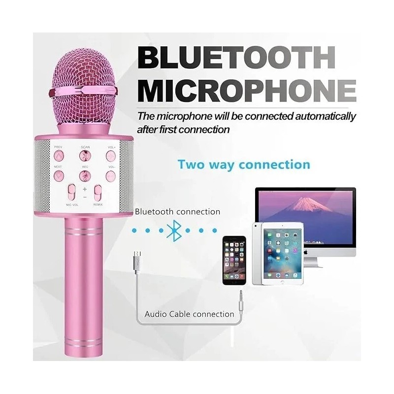 Niskite Karaoke Microphone – Play/Record – Bluetooth – Voice Changing Feature -Pink