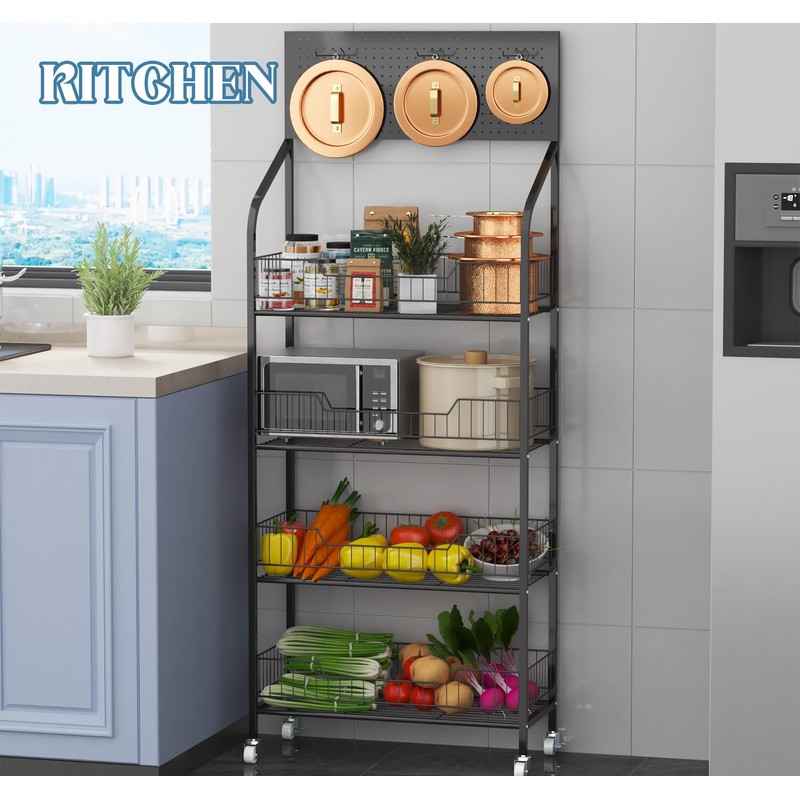 - Safety Borders & 10 Hooks: Our free-standing supermarket shelf have borders on the sides; Snacks, fruits, vegetables, etc. are not easy to fall off; Equipped with 10 removable hooks, you can hang various items and make full use of space
