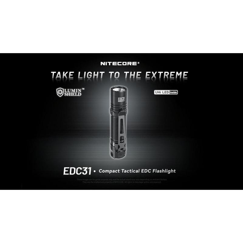 The Nitecore EDC31 flashlight boasts an amazing brightness and throw with a compact size, making it an ideal choice for everyday carry. Featuring the innovative NiteLab UHi 20 MAX LED, the EDC31 delivers a powerful 3500 lumen output and an impressive throw of 415 yards. For momentary modes, half-press and hold to activate the 1500 lumen spotlight for searching, or fully press and hold to engage the full 3500 lumen output. Fully press the tail switch to power the light on or off. While the light is on, perform a half-press to cycle through four different brightness levels for daily tasks. The selected brightness level is memorized even after turning off the light.