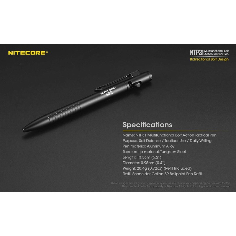 Nitecore NTP31 Aluminum Multifunctional Bolt Action Design Tactical Pen