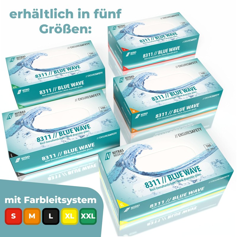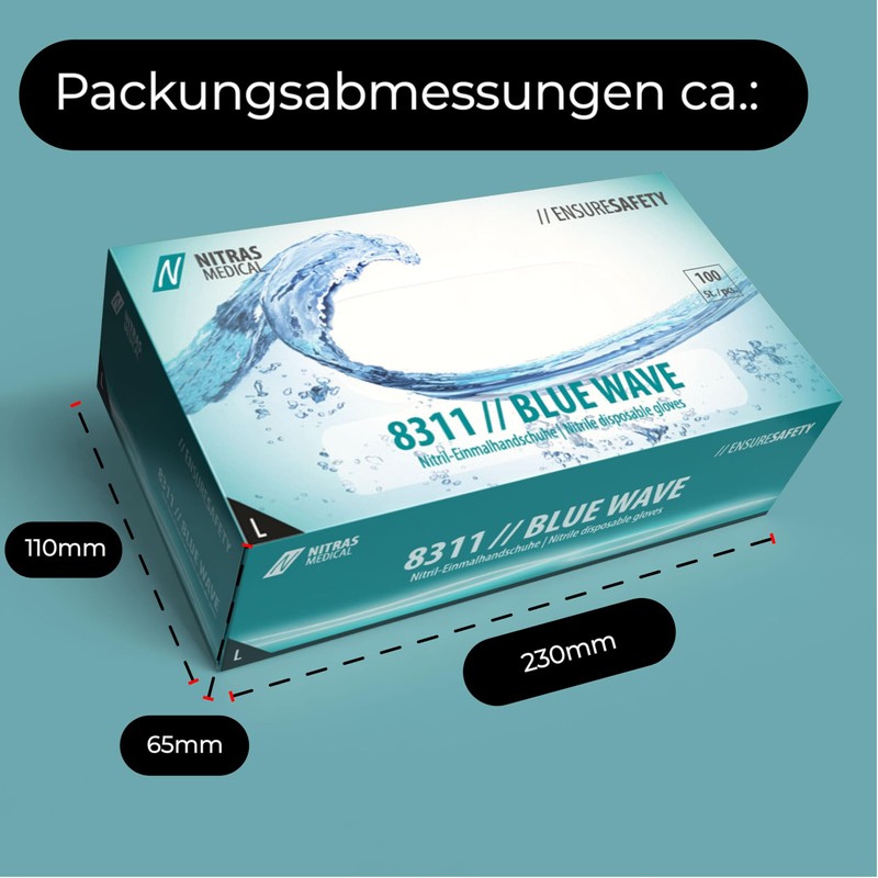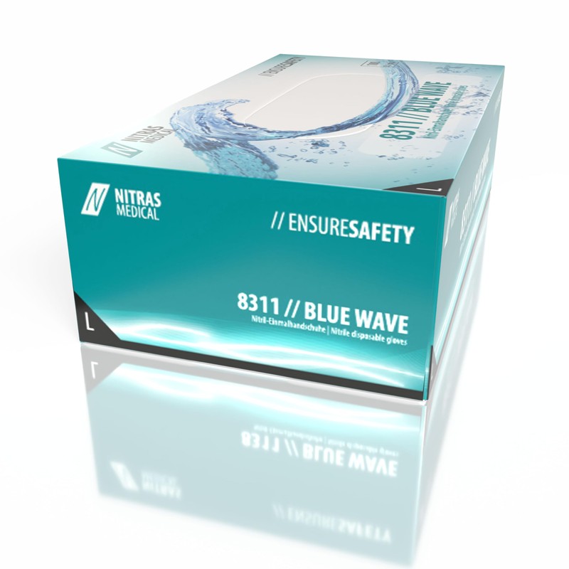 - Nitras Blue Wave 832-L Nitrile Disposable Gloves, Large, Pack of 100