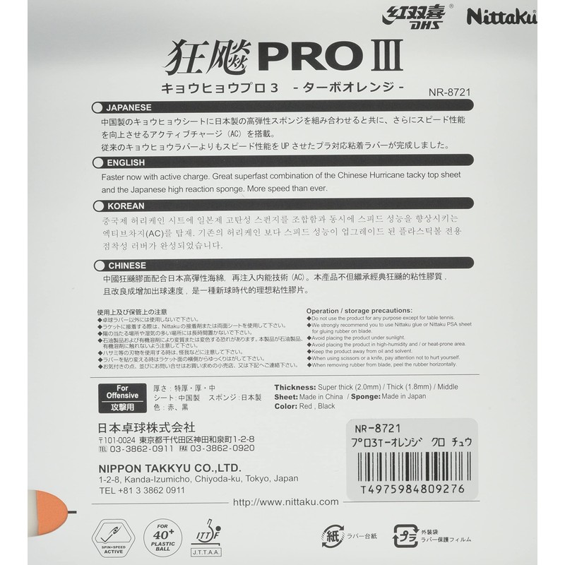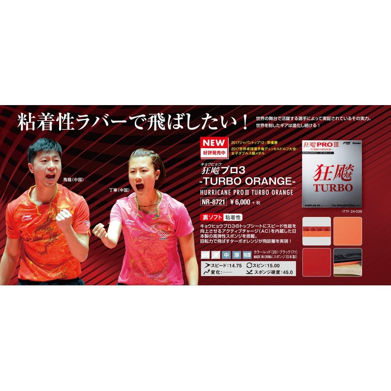 ニッタク(Nittaku) 卓球 ラバー キョウヒョウ プロ3 TURBO ORANGE 裏ソフト 粘着性 ブラック 特厚 NR-8721(スピン)