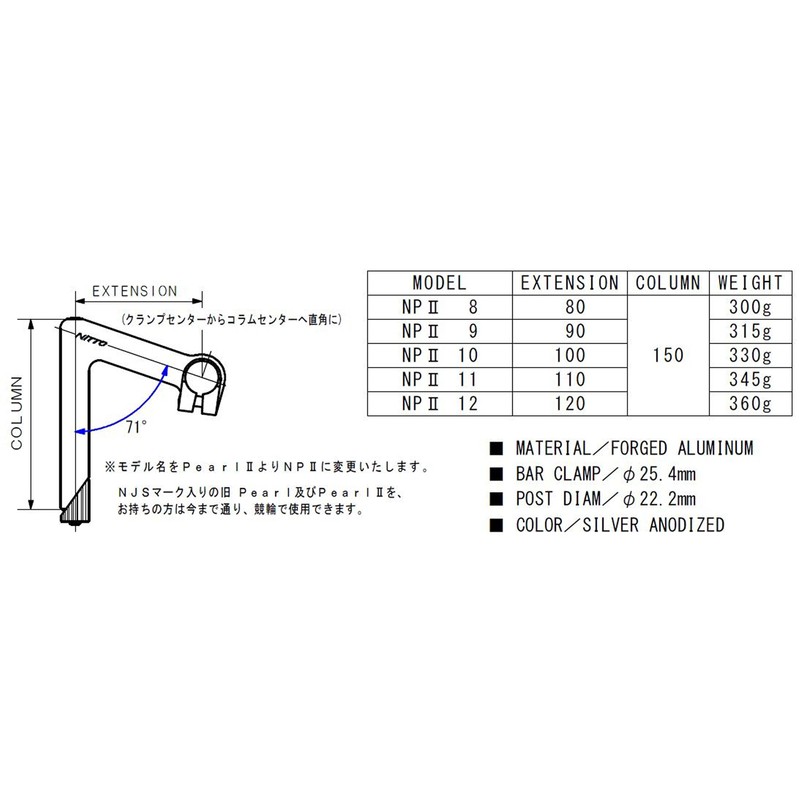 Nitto (日東) Stem npii NJS npii 12 φ 25.4 φ 22.2 120 Silver