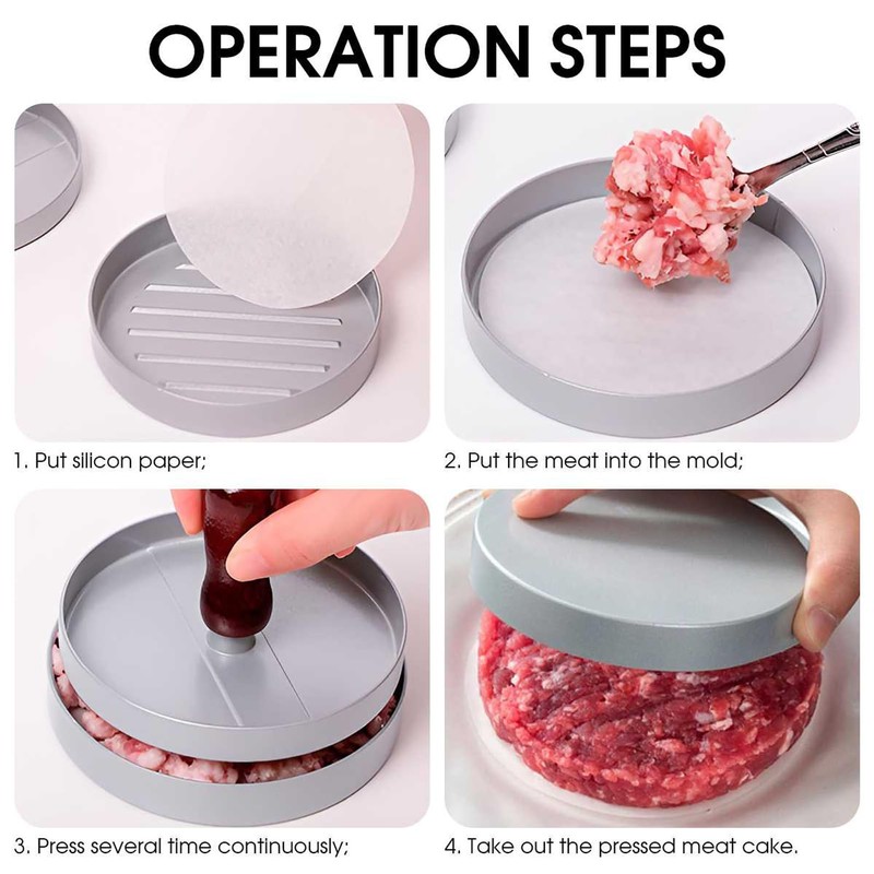 - Non Stick Hamburger Press Patty Maker: Crafted from high-quality food-grade aluminum alloy and wood, our hamburger press patty maker is designed for durability and longevity. The easy-release bottom base creates a non-stick surface, ensuring your patties come out intact and ready to cook. This premium construction guarantees years of reliable use.