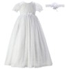 - This baptismal dress is made of 3 layers of material, and the outer layer is exquisitely soft and tulle embroidered. The cotton lining is comfortable to wear and is suitable for babies.