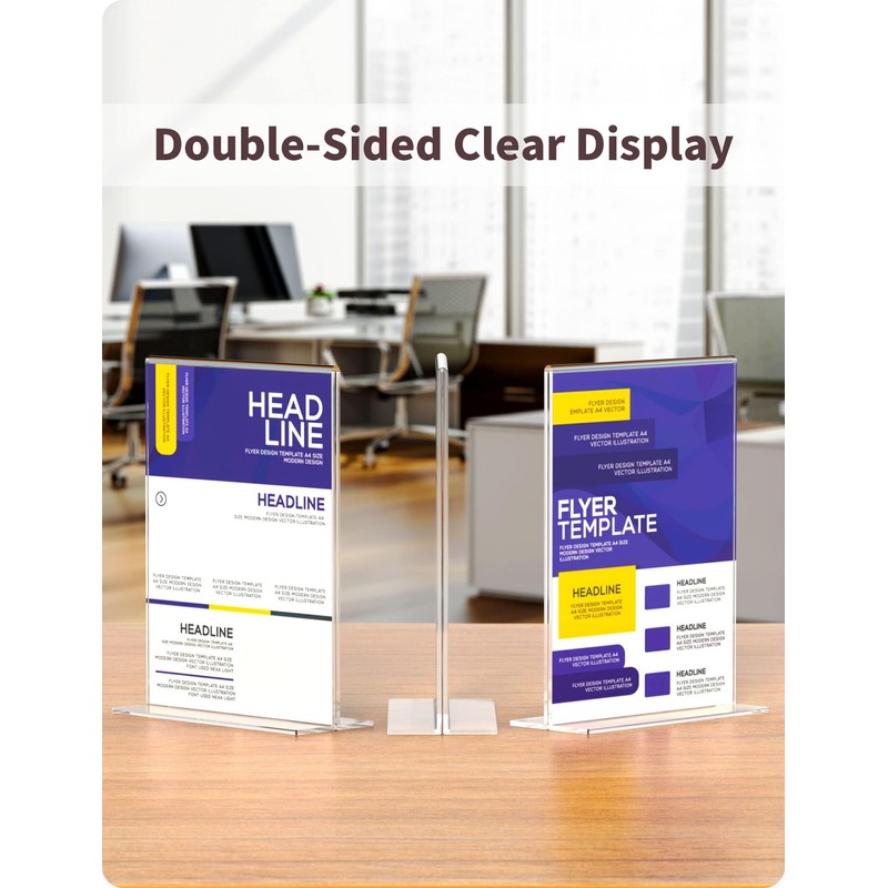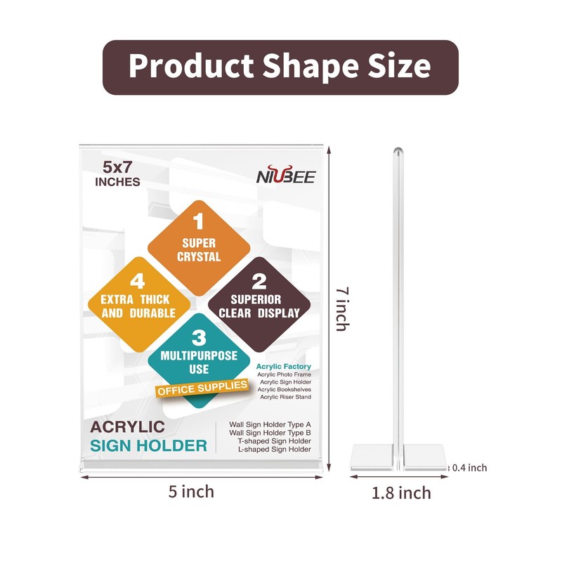 - COUNTER OR TABLE DISPLAY - NIUBEE double sided acrylic sign holder will securely stand by itself vertically on any countertop, desktop, tabletop or any flat surface. It will never fall over.