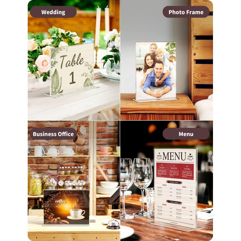 - DOUBLE SIDED DISPLAY - Great for menus, flyer and table signs. Displays and protects on both sides with great clear visibility and is easy to clean & change content. Each single side panel is 2mm thick.