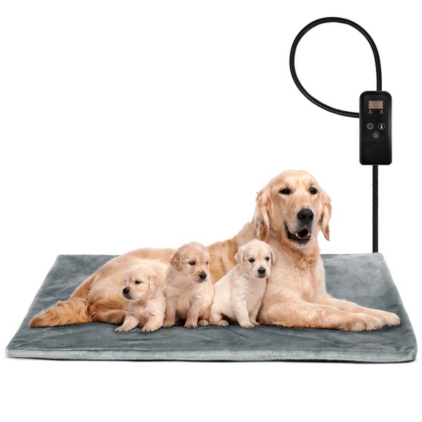 Niubya Pet Heating Pad for Dogs and Cats, Adjustable Temperature and Waterproof Pet Heated Mat with Timer, Electric Heating Pet Bed with Chew Resistant Cord and Soft Washable Cover