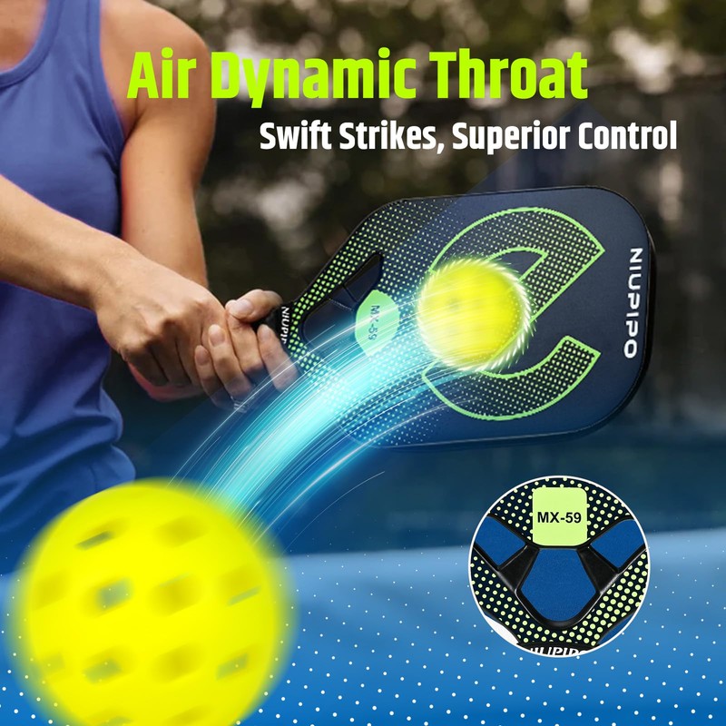 - [Extended Sweet Spot] Measuring 15.9" x 7.4" and weighing 8 oz, this niupipo pickleball paddle is tailored for a wide range of players, from intermediate to professional. Designed to maximize playability, it boasts a long handle and elongated shape, significantly enlarging the sweet spot for powerful strikes. Ideal for aggressive players, it enhances precision in both indoor and outdoor competitive settings.