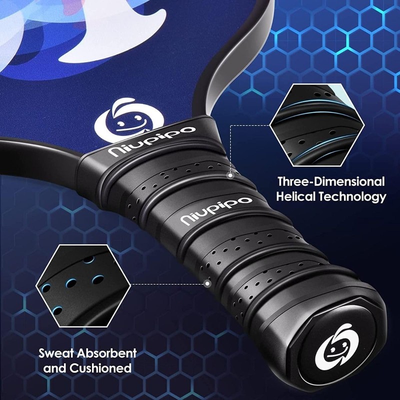 - Attention to detail brings comfortable grip and edge guard: The pickleball paddle’s handle is shaped with a 4.72” grip length and 4.25'' grip circumference; It makes the paddle comfortable to hold; Also, niupipo pickleball paddle’s grip is sweat-absorbent and cushioned; It helps users to better grasp the grip and provides cushioning so that you will not be tired from playing for a long time; And the edge guard of the pickleball set can avoid the hasty end of the play due to damage to the racket