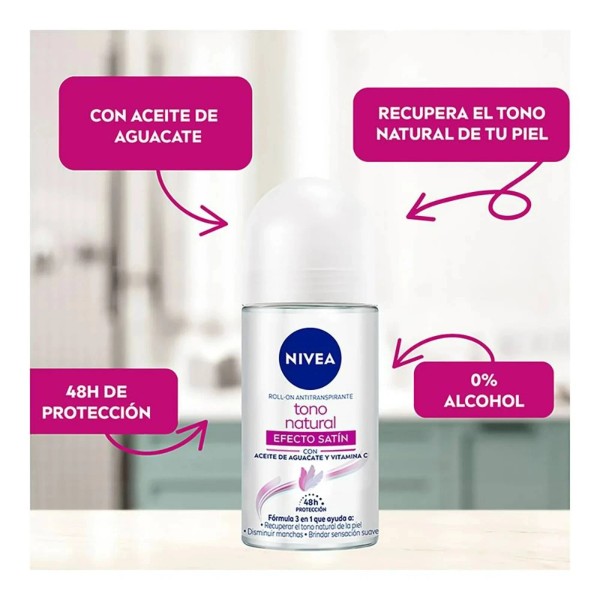 2 X Antitranspirante NIVEA tono natural efecto satín roll on 50 m