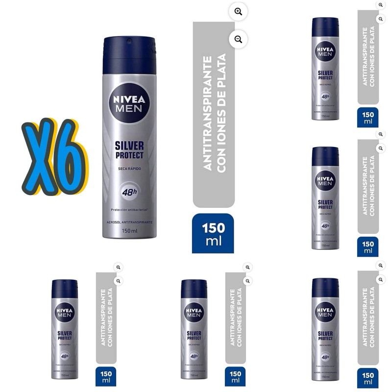 NIVEA 6 PACK MEN NIVEA DEODORANT SPRAY 150ml-91g 48h SILVER PROTECT SECA RÁPIDO