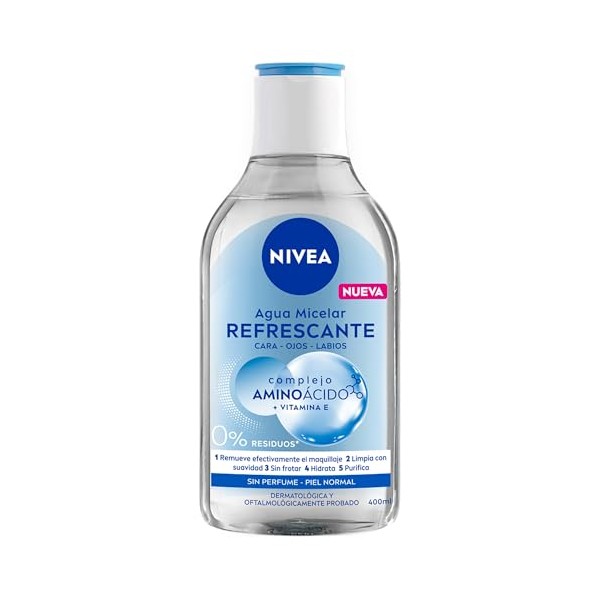 NIVEA Agua Micelar para Piel Normal(400 ml) - Fórmula Vegana con Complejo Aminoácido, Remueve Maquillaje a Prueba de Agua, Limpia y Refresca la Piel - Ideal para Todo Tipo de Piel