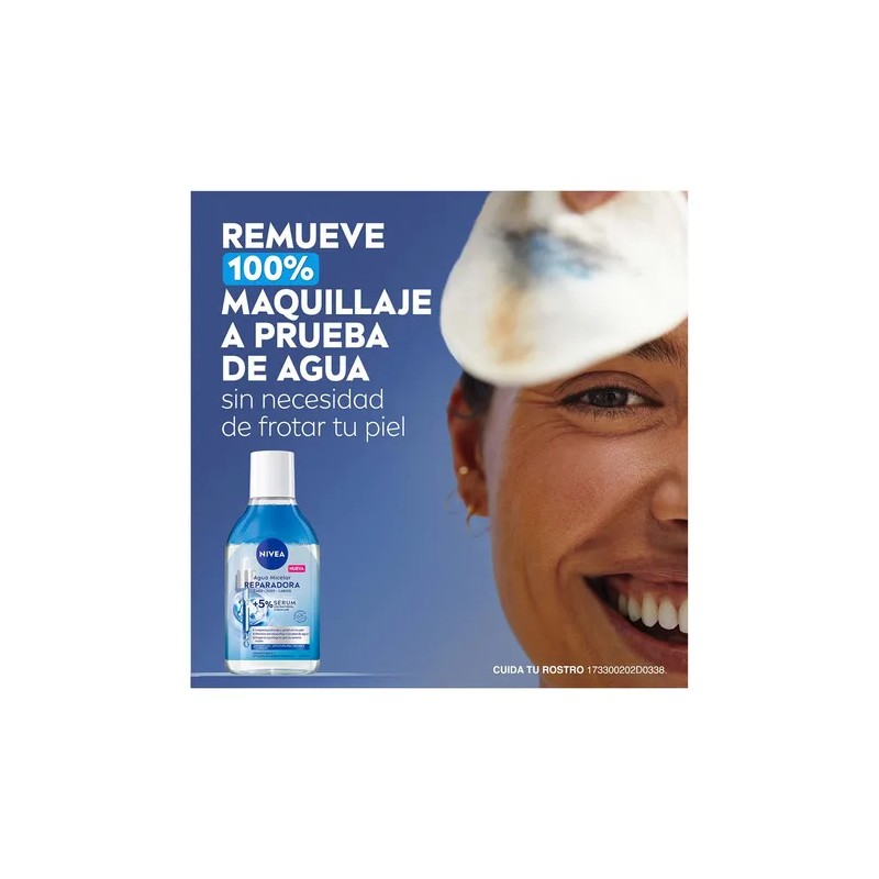 NIVEA Agua Micelar Desmaquillante Reparadora enriquecida con infusión 5% Sérum, más un complejo de aminoácidos, brinda una limpieza profunda y gentil con la piel.