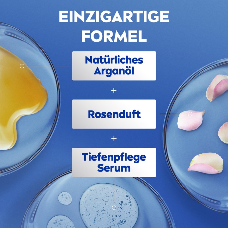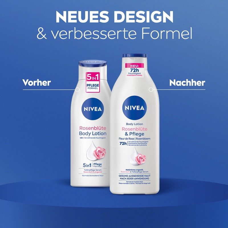 - The NIVEA Rose Petal and Care Body Lotion with natural argan oil, rose fragrance and deep care serum provides 72 hours of intensive moisture; for healthy-looking skin after each use
