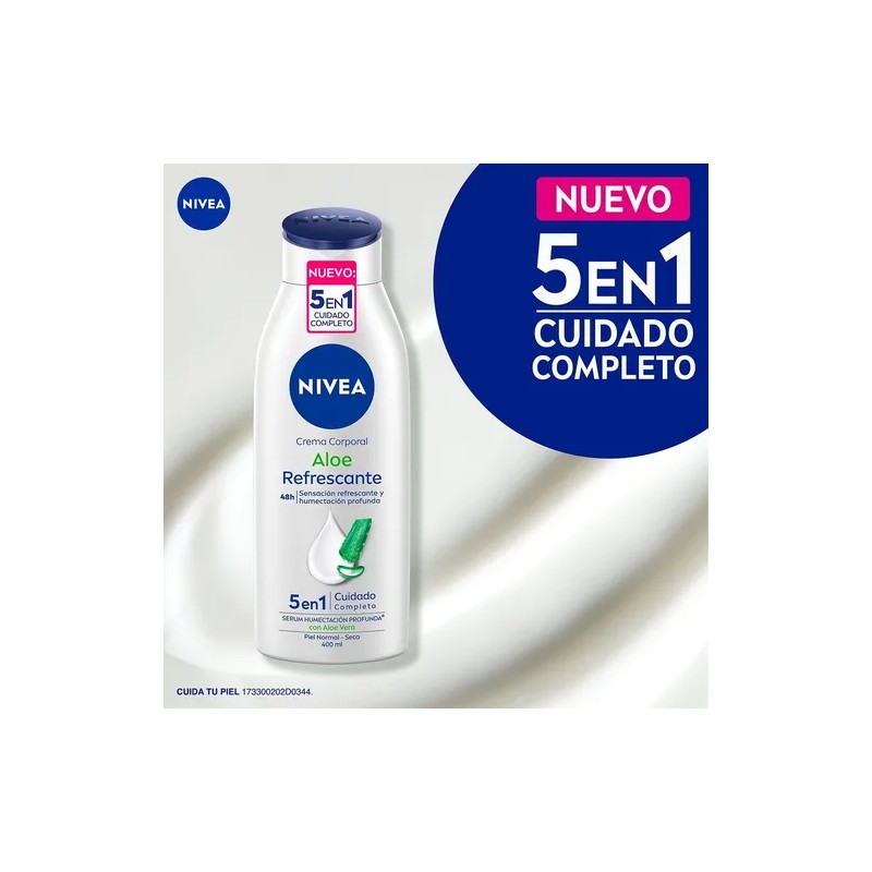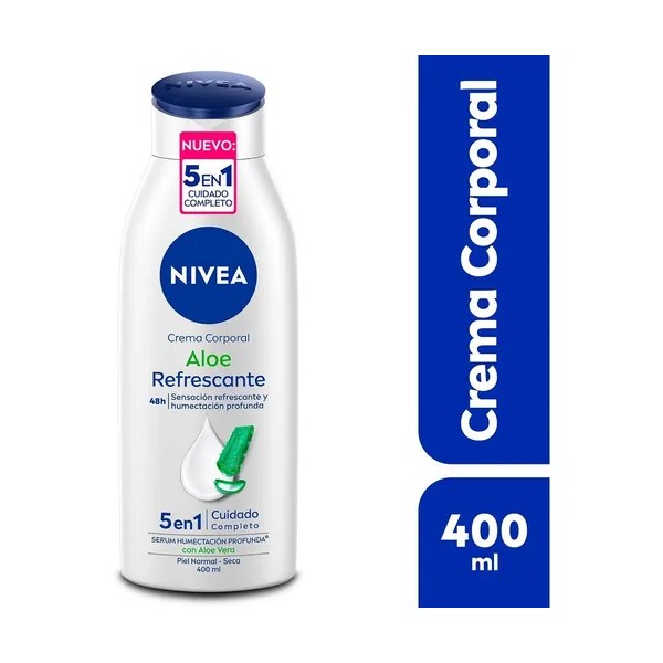 ¡Experimenta una hidratación profunda y una sensación refrescante inigualable con la Crema Corporal NIVEA Aloe Refrescante! 💖 Este envase de 400ml ofrece un cuidado que puedes sentir y ver, con una hidratación que dura hasta 48 horas.