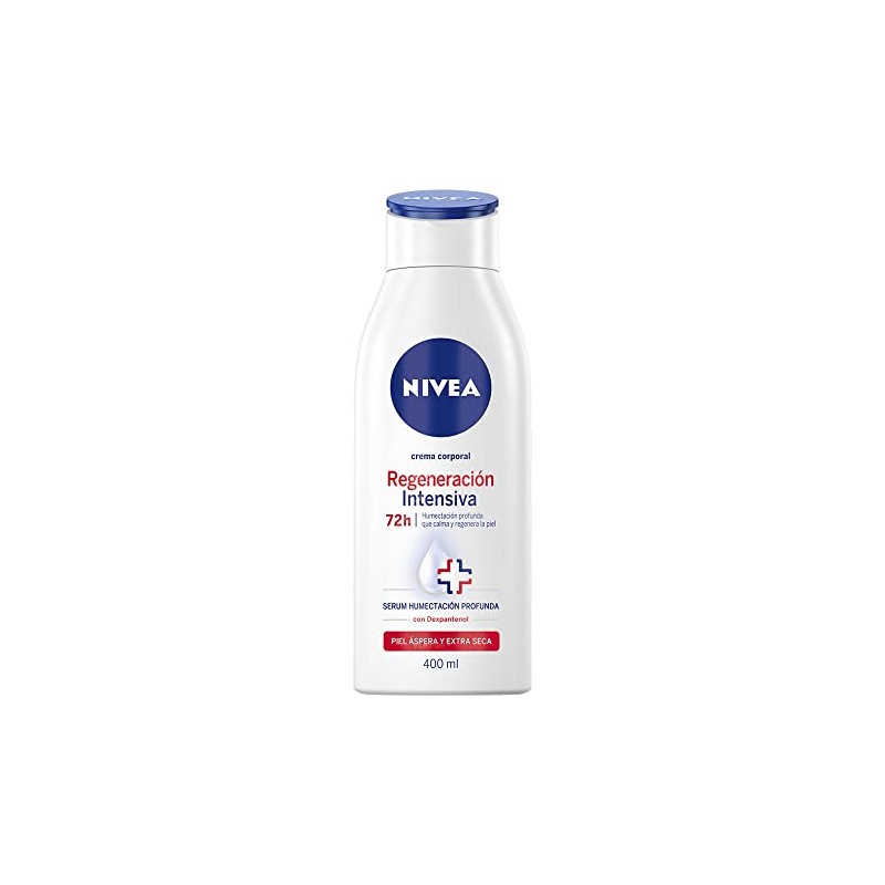 - resequedad y suavidad inmediata sin sensación grasosa para una piel saludable. Enriquecida con serum de humectación profunda NIVEA, dexpantenól y Vitamina B5. Nutre profundamente las pieles extra secas y ásperas desde la primera aplicación. Fórmula ultraligera que restaura la apariencia de la piel. Se absorbe rápidamente en segundos, dejando la piel suave y flexible. Ideal para uso diario, aumentando la hidratación de la piel, nuestra crema corporal es un complemento esencial para tu rutina de cuidado de la piel. Disfruta de una piel radiante y bien cuidada con la Crema Corporal NIVEA Regeneración Intensiva.