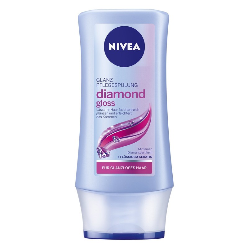 The NIVEA shine conditioner with the finest diamond particles and liquid keratin makes your hair shine brilliantly, gives it feather-light volume and makes combing easier. The lightweight and transparent formula is a perfect blend of nourishing ingredients, fine diamond particles and liquid, hair-identical keratin. This gives the hair fullness as well as a supple and smooth structure for a shiny appearance at any time of day.