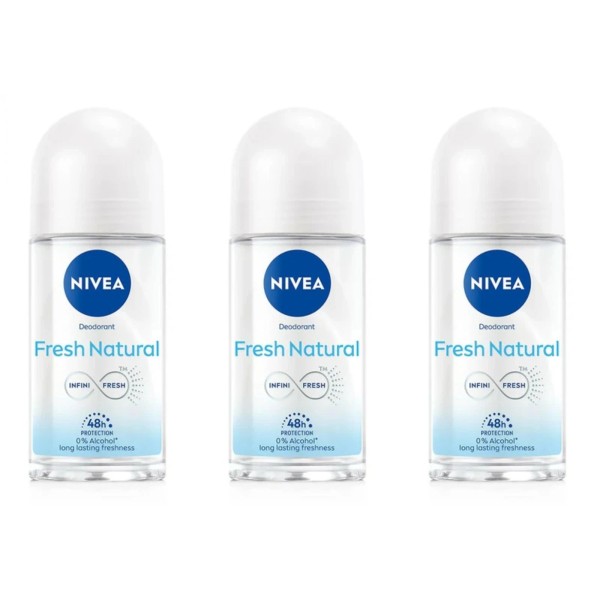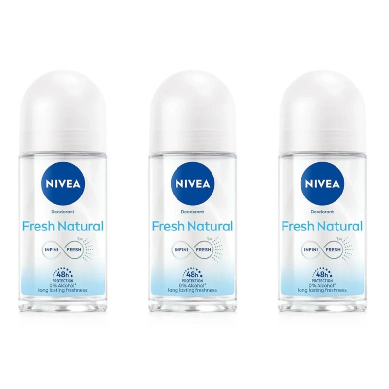 Nivea Fresh Natural Infini-Fresh Roll-On Deodorant Antibacterial 50ml 3-Pack