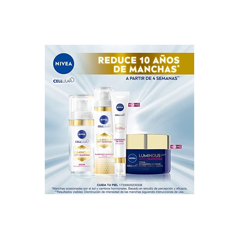 🌟 ⭐ NIVEA Kit Anti-manchas Rutina Facial Completa Luminous 630 (4 piezas), Enriquecida con Ácido Hialurónico Serum facial + Fluido facial con Vitamina E y FPS50 + Contorno de Ojos Anti-ojeras + Crema de Noche Reparadora ⭐ 🌟
