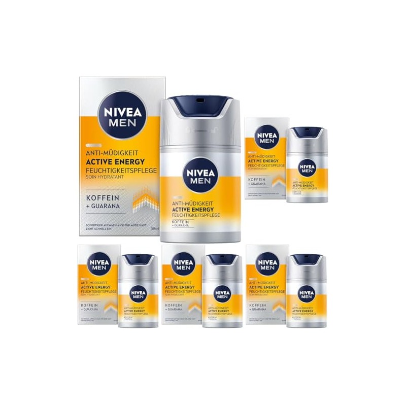 NIVEA MEN Active Energy Gesichtspflege Creme (50 ml), revitalisierende Gesichtscreme für Männer, schnell einziehende Feuchtigkeitscreme gegen Zeichen von Müdigkeit (Packung mit 5)
