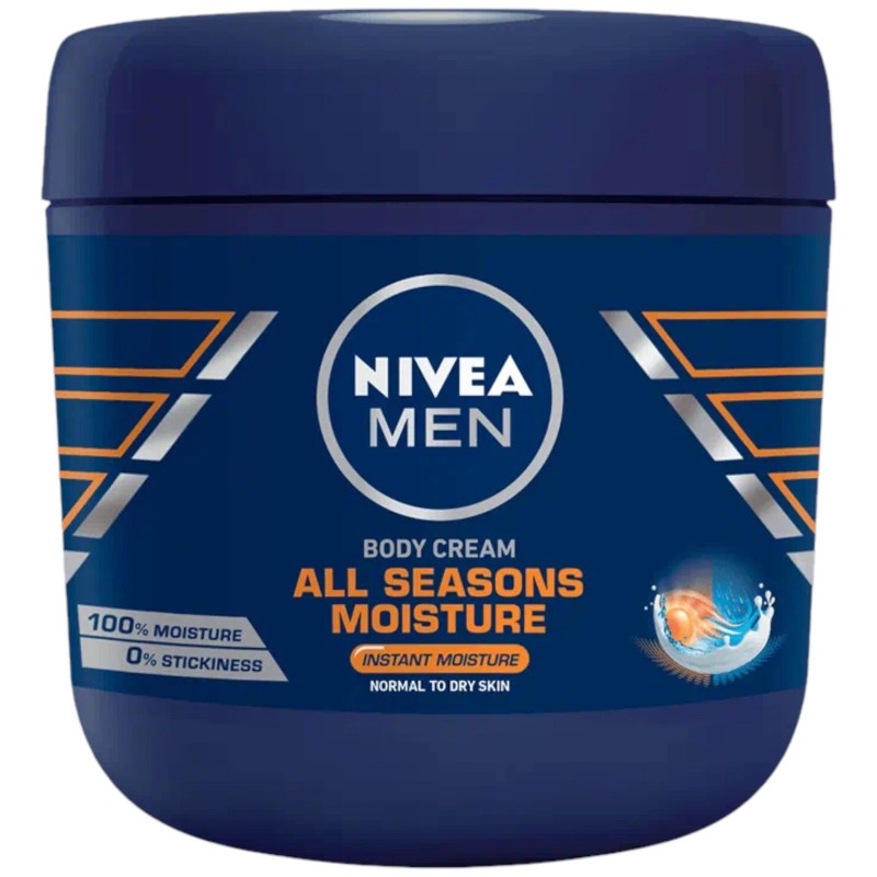 Want the convenience of using only one product for all your moisture needs, without any stickiness, all year round? Go for it! With NIVEA Men All Seasons Moisture Body Cream won't leave your skin dry in the winter or sticky in the summer.