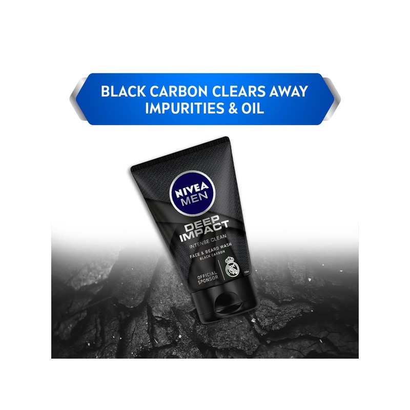 Nivea Men Deep Impact Intense Clean Face and Beard Wash - Black Carbon, 100 ml (3.3 oz)