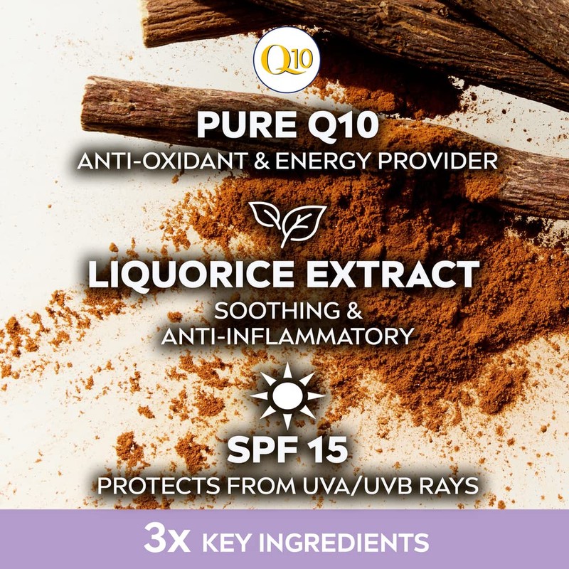 - Dual action: NIVEA Q10 day cream with Liquorice Extract features dual action benefits to replenish the skin with energy and neutralise skin damages from the day