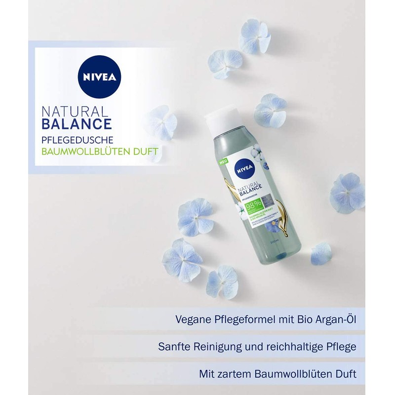 - Natural Balance - With delicate cotton flower fragrance and nourishing organic argan oil, the shower gel cleanses and nourishes the skin and leaves a gentle feeling on the skin.