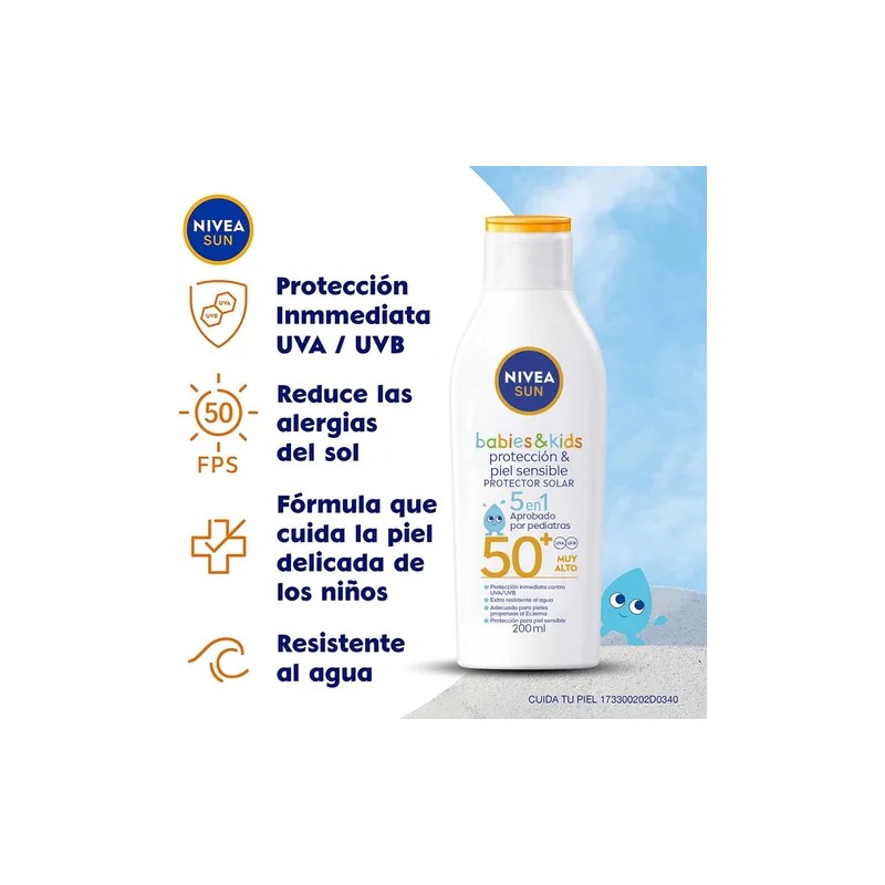 Título: NIVEA Sun Babies & Kids Protector Solar Sensitive Fps50 200ml Bloqueador para pieles sensibles