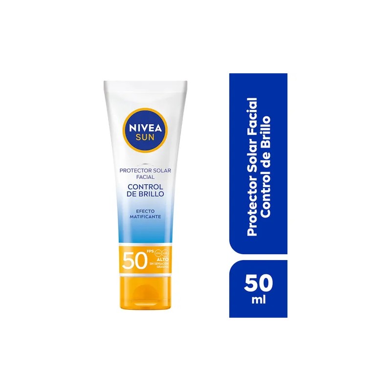 NIVEA SUN Protector Solar Facial Control De Brillo FPS50+ 50ml, con Efecto Matificante de Larga Duración, Bloqueador Solar Facial No Grasoso para todo tipo de piel