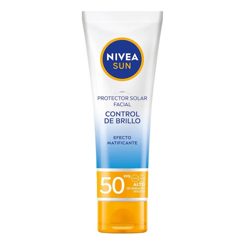 NIVEA Sun Facial FPS50 con efecto mate. Controla el brillo hasta por 8 h. Textura ligera, no grasa, ideal para uso diario y piel grasa.